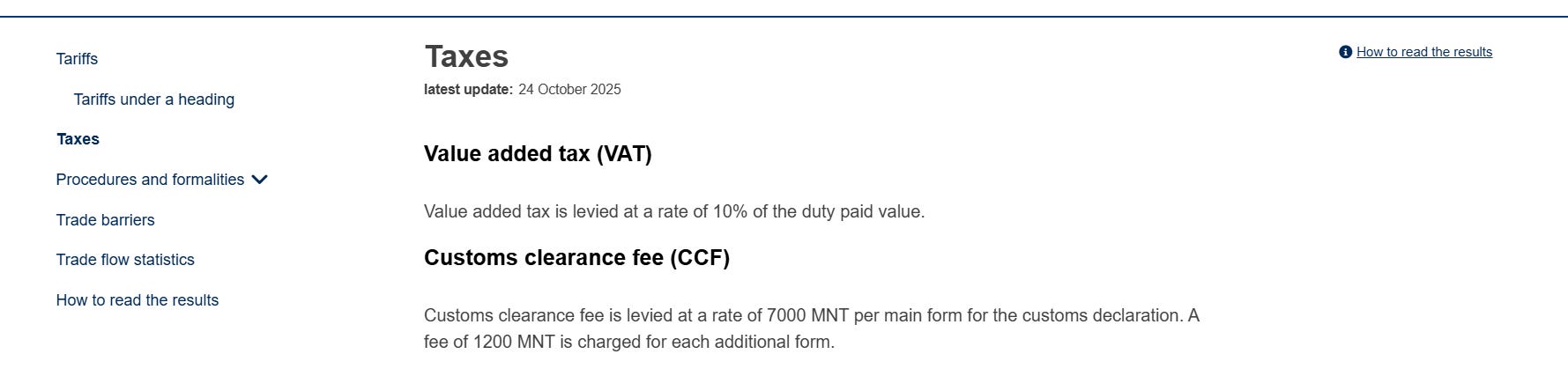 B. En el apartado de los impuestos, nos dará toda la información sobre los impuestos que pueden afectar a nuestra operación comercial. En este caso, nos avisa de que existe un 10 % de IVA y una tasa de servicio de aduanas.