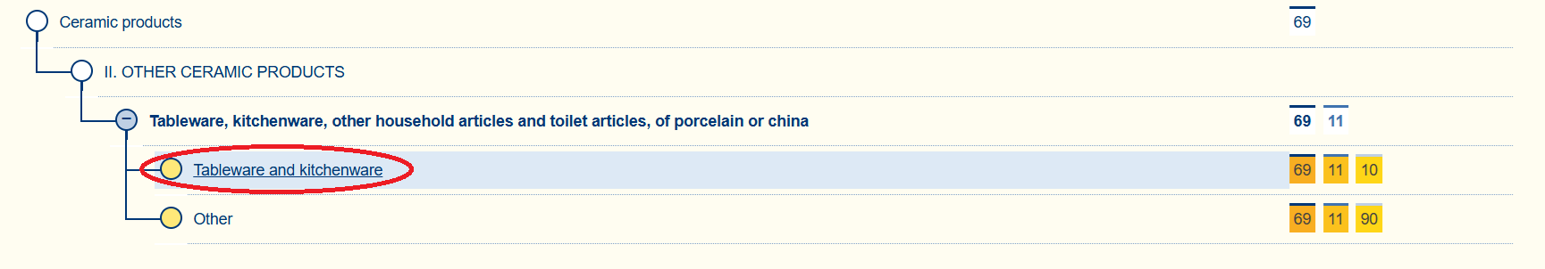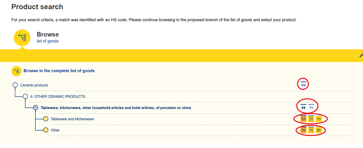 Una vez realizada la búsqueda con el código HS nos dará un listado detallado de todos los materiales subdivididos en el código TARIC, nosotros tendremos que discernir cuál es el que más se ajusta a la definición de nuestro producto. En el caso de buscarlo con el TARIC nos encontrará el bien en concreto.