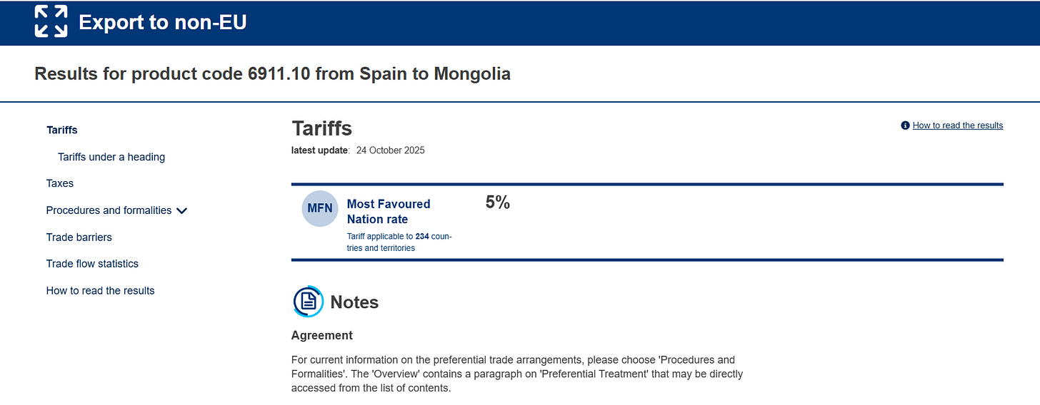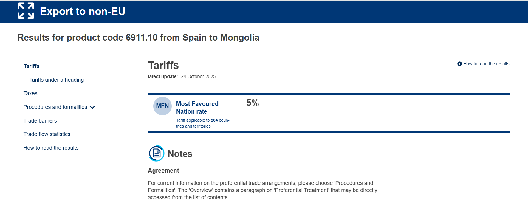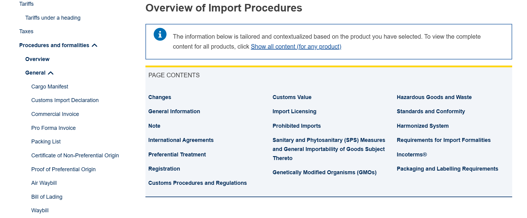 Una vez dentro tendremos toda la información referente a todas las barreras al comercio aplicadas a la importación en el país objetivo.