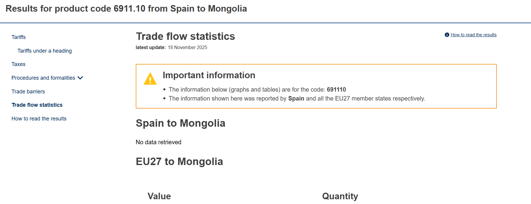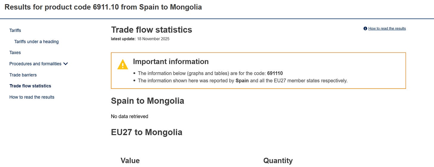 D. En el apartado de estadísticas de comercio tendremos información sobre el comercio entre nuestro país y el país de destino y la UE y el país de destino.