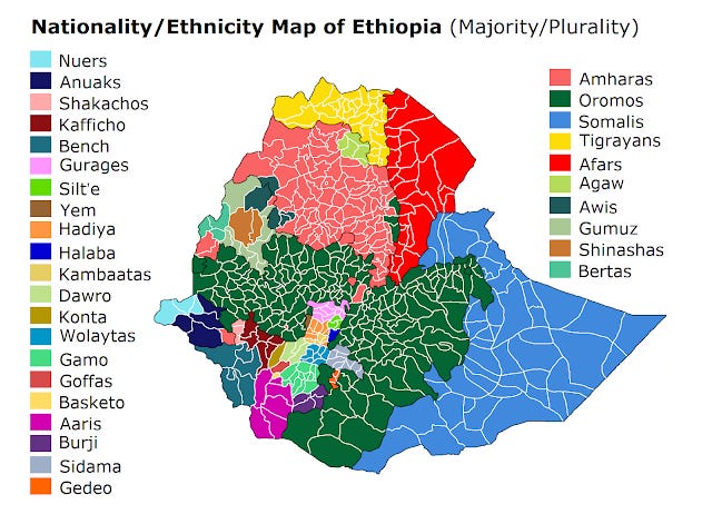 La nueva Etiopía de 1991 nace como un Estado etnofederal, el cual, en sus inicios tomó en consideración la diversidad cultural del país y aplicó leyes y políticas para devolver la autonomía a las regiones. El nuevo Estado creado por el partido multiétnico EPDRF se basaba en la etnicidad, incluso reconociendo el derecho a secesión en el caso de violar, el gobierno central, los derechos y costumbres de los pueblos etnofederados.
