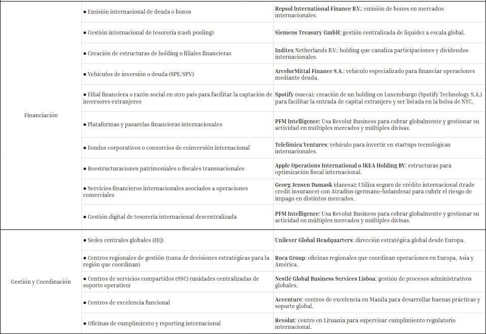 Financiación → Se internacionaliza la función financiera y patrimonial de la empresa, entendida como el conjunto de actividades destinadas a gestionar, movilizar o estructurar el capital.